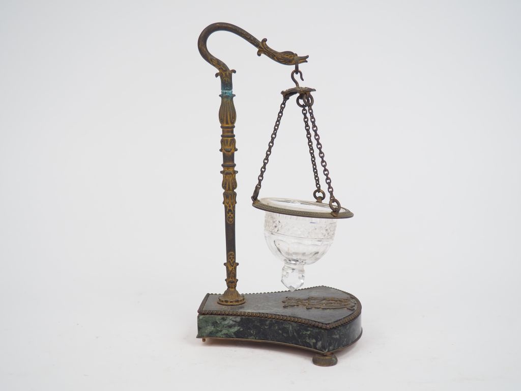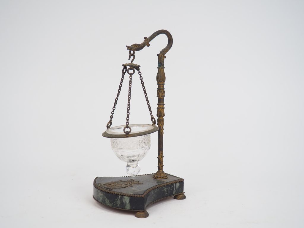 Veilleuse de style Empire en marbre vert, cristal et bronze, à décor de col de cygne et d’aigle. H. 24 cm