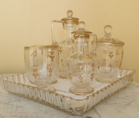 Lot de Verre à eau Napoléon III en cristal et émail doré à décor de fleurette au prix de 150 à 250 € en vente aux enchères par l'hôtel des ventes Primardeco