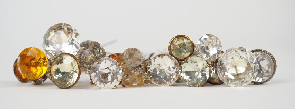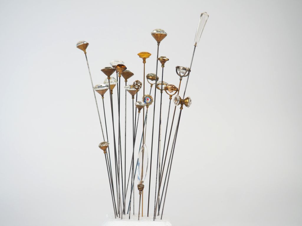 ART POPULAIRE : COLLECTION DE VERRES SOUFFLÉS XVIIIÈME ET XIXÈME, VERRERIES DE GRÉSIGNE ET DE POTS EN TERRE VERNISSÉE, EPINGLES A CHAPEAU
