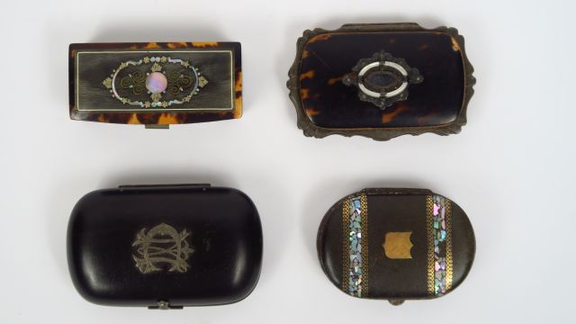 4 différentes bourses Napoléon III en écaille, bois noirci et marqueterie de nacre