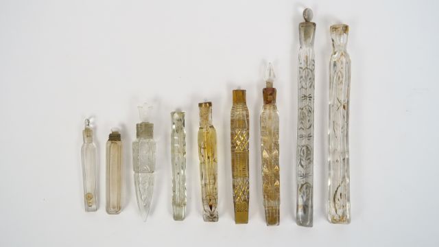 9 flacons à odeurs XIXème en cristal (avec ou sans bouchon)