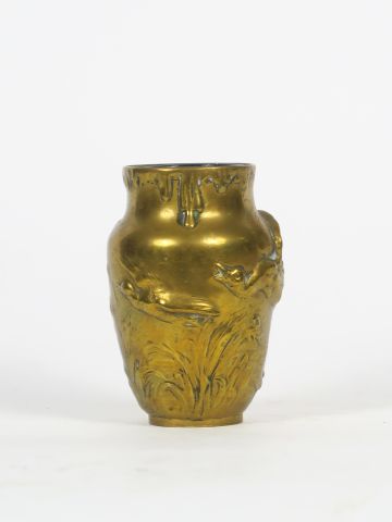 A. VIBERT. Vase Art Nouveau en bronze à décor en relief de canards et de joncs. Signé. H. 13 cm