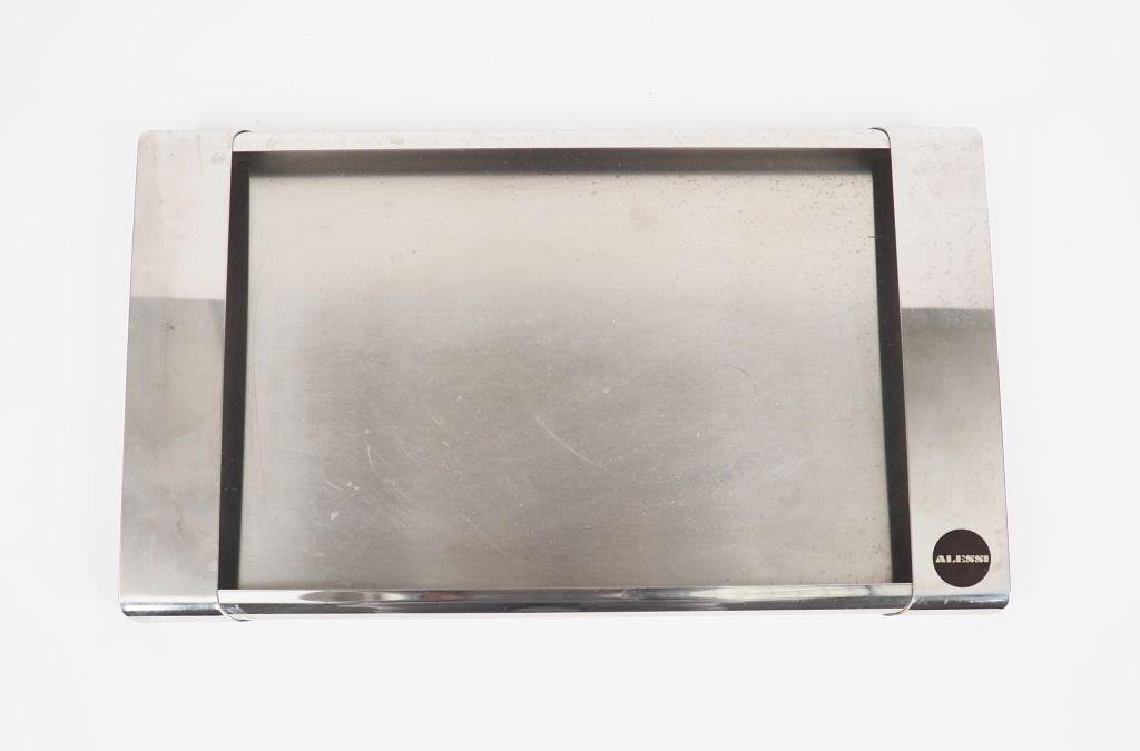 Lot de ALESSI. Plateau en métal chromé Dim. 45 x 26 cm au prix de 30 à 40 € en vente aux enchères par l'hôtel des ventes Primardeco