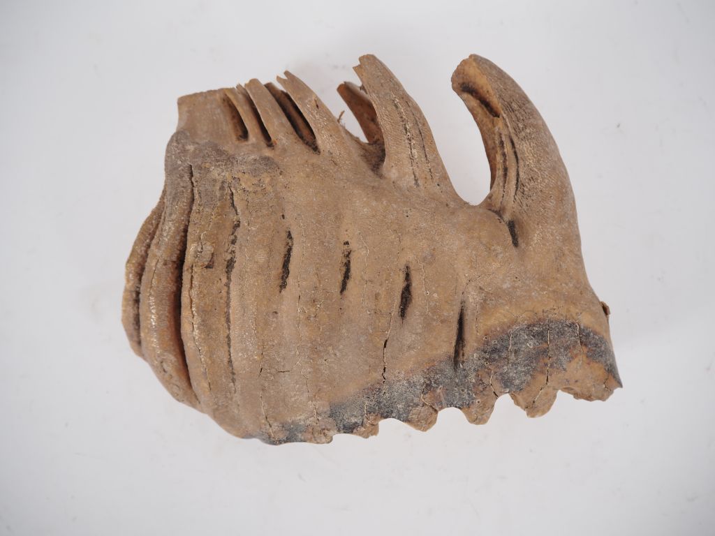 Ancienne dent d’éléphant. H. 16 cm, L. 21 cm. Expert : Jean-Sylvain Caillou, EI.