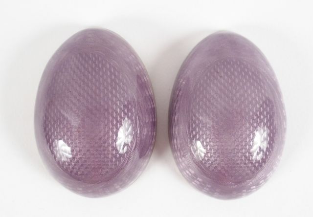 Lot de Boite à couture en forme d'œuf en vermeil et émail guilloché mauve. au prix de 150 à 250 € en vente aux enchères par l'hôtel des ventes Primardeco