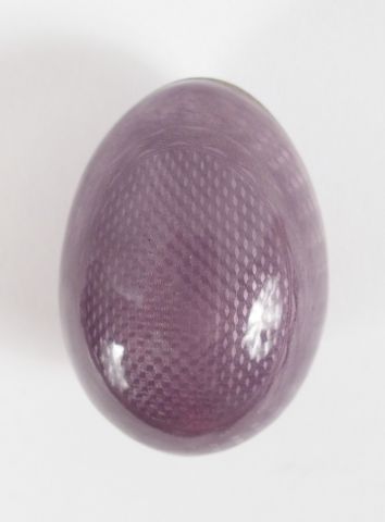 Boite à couture en forme d'œuf en vermeil et émail guilloché mauve.