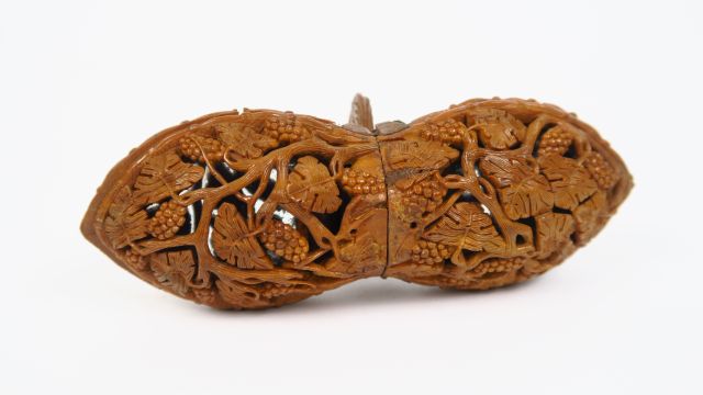 Boite début XIXème en corozo, à décor de personnages et de pampres (petits accidents)