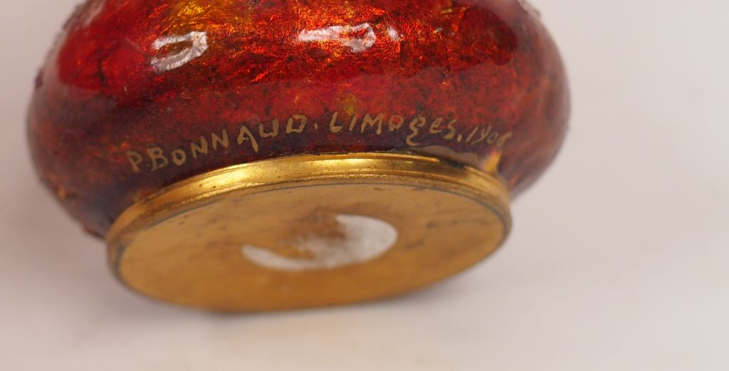 BONNAUD. Soliflore 1900 en émail. Signé et daté 1906. H. 9 cm