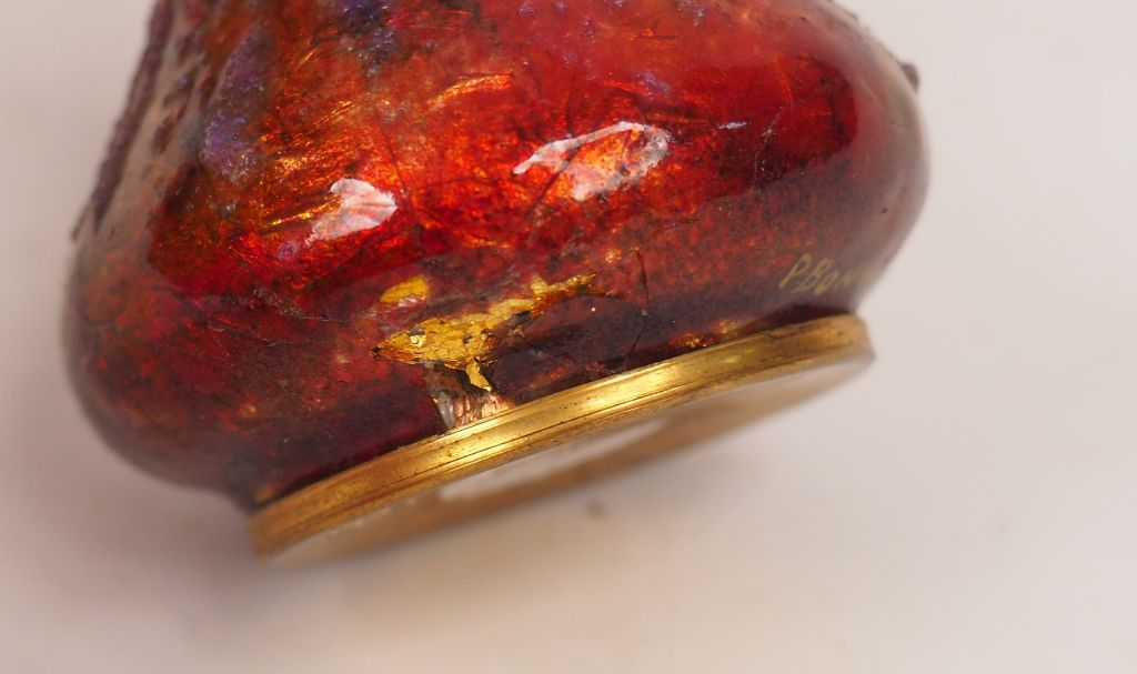 Lot de BONNAUD. Soliflore 1900 en émail. Signé et daté 1906. H. 9 cm au prix de 30 à 40 € en vente aux enchères par l'hôtel des ventes Primardeco