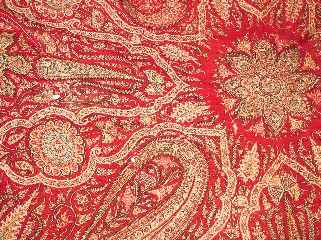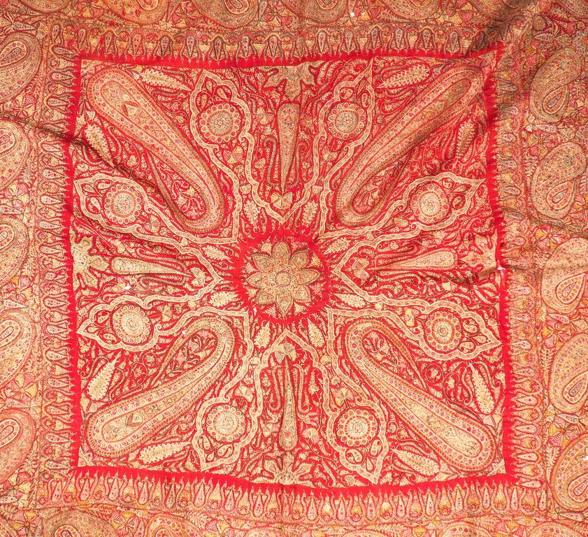 Lot de Châle en cachemire. Dim. 177 x 158 cm (petits accidents) au prix de 200 à 300 € en vente aux enchères par l'hôtel des ventes Primardeco
