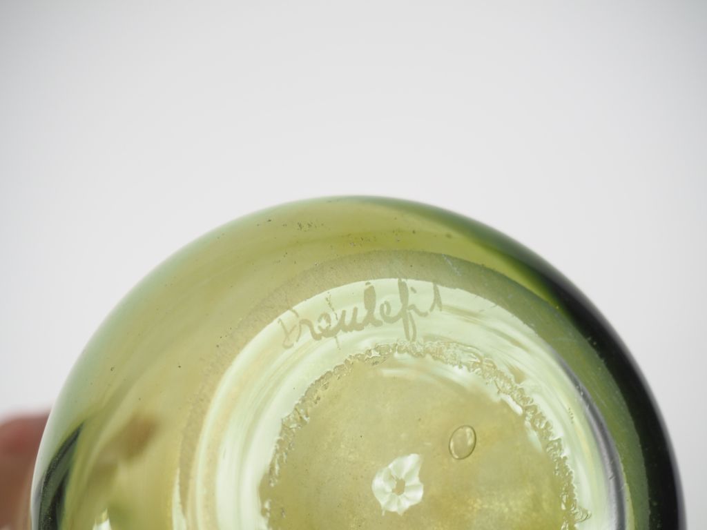 Claude MORIN à Dieulefit. Vase "bouteille folle" en verre soufflé vert. Signée. H. 51 cm