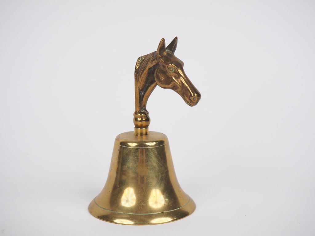 Lot de Clochette en bronze, prise en forme de tête d'étalon. H. 14,5 cm. au prix de 20 à 30 € en vente aux enchères par l'hôtel des ventes Primardeco