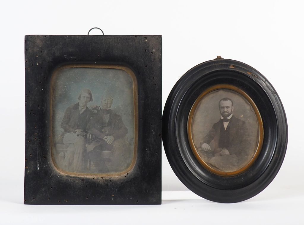 Deux daguerréotypes XIXème, "Portrait Louis Omer Ratel et son fils Stanislas" et "portrait de Paul Durand" daté du 7 octobre 1850. Dim. 10 x 7 cm. Dim. 7,5 x 6 cm.