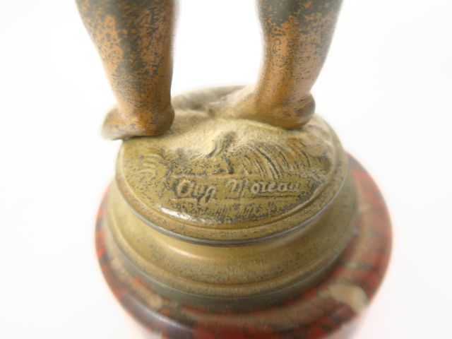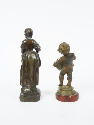 Deux différents sujets XIXème en régule figurant une jeune fermière et un amour (d'après Moreau) H. 21,5 et 16 cm