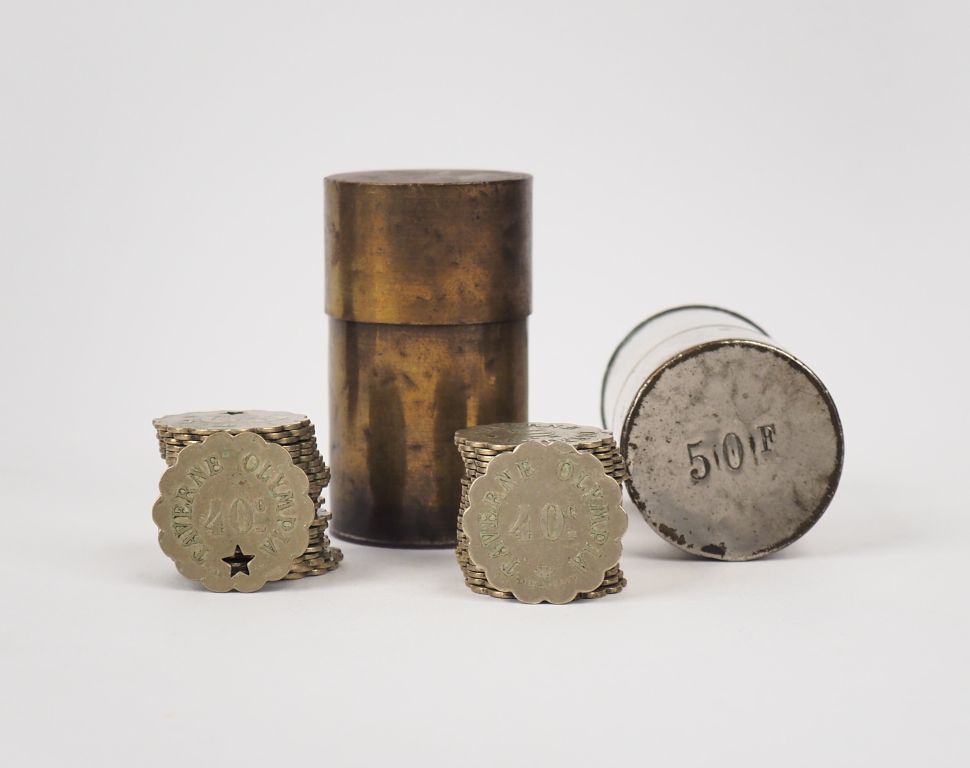 Lot de Deux étuis à monnaies contenant des jetons de tavernes. au prix de 60 à 80 € en vente aux enchères par l'hôtel des ventes Primardeco