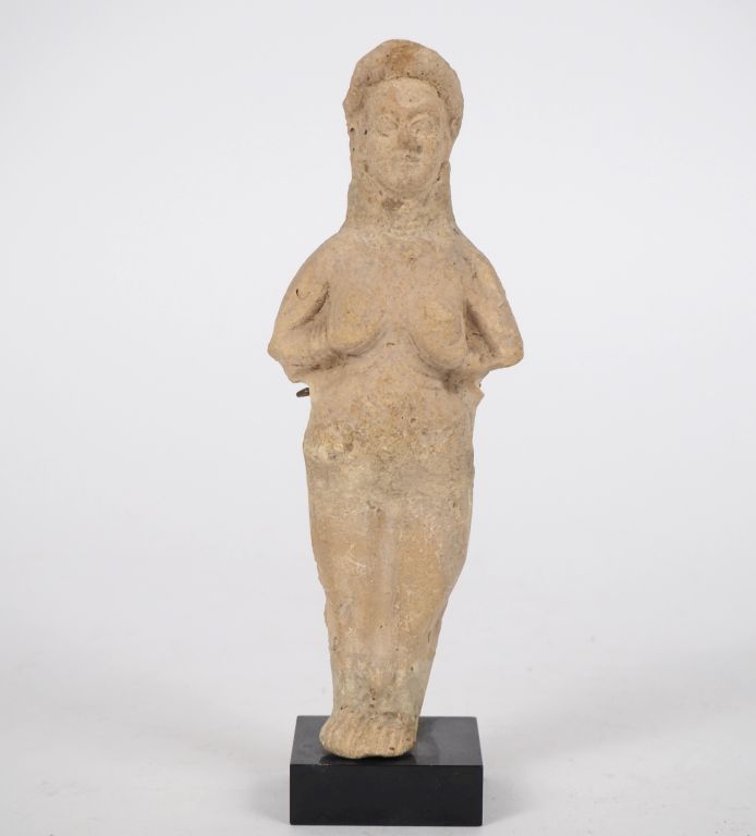 Iran (Suse), v. 1500-1100 av. J.-C. Idole féminine (déesse Astarté) se tenant les seins. Figurine en terre cuite. H. 17 cm Expert : Jean-Sylvain Caillou, EI.