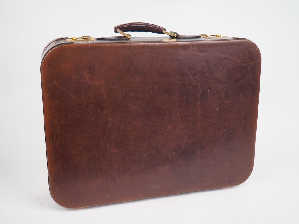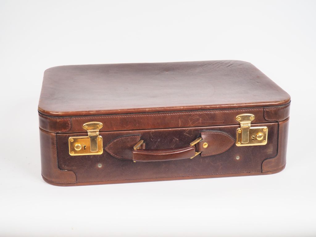 Lot de Maison SCHILZ à Paris. Valise en cuir et laiton. Signée. Dim. 41 x 54 au prix de 40 à 60 € en vente aux enchères par l'hôtel des ventes Primardeco