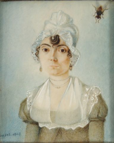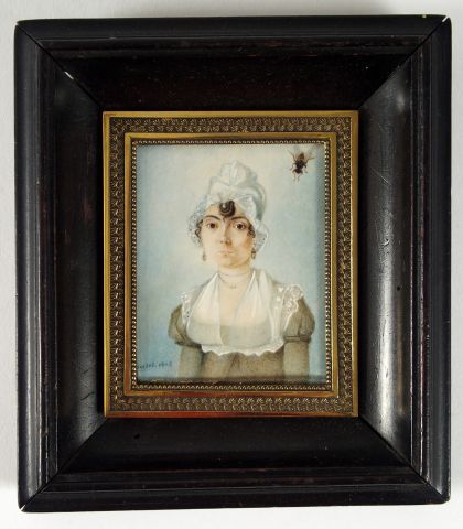 Miniature Empire "Portrait de jeune fille". Signée (PORTET?) en bas à gauche et datée 1808. Dim. : 6 x 4,5 cm