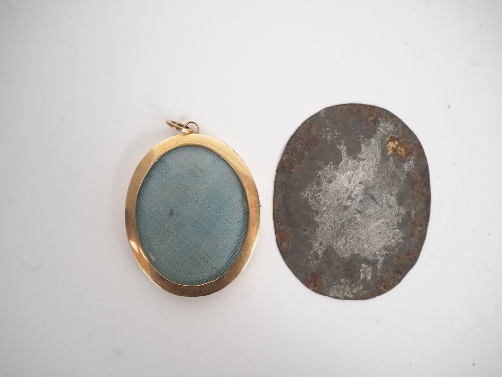 Miniature fin XVIIIème, "portrait d'homme à l'habit rouge" Dim. 4,5 x 3,8 cm. On y joint une miniature sur zinc, "portrait de jeune homme". Dim. 6 x 4,5 cm. (Mauvais état).
