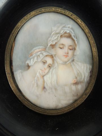 Miniature XIXe de style Directoire ‘Portrait de Chaudé, ancien directeur du Mont de piété à Paris'. On y joint une miniature de style Directoire ‘Portrait de mère et sa fille'