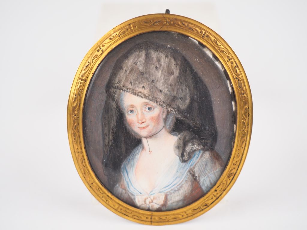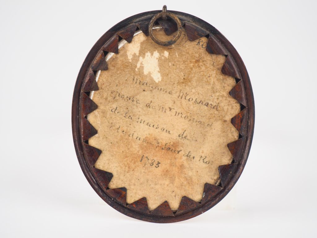 Miniature XVIIIème, "portrait de madame Mosnard", Datée au dos 1783. Dim. 5,8 x 5 cm.
