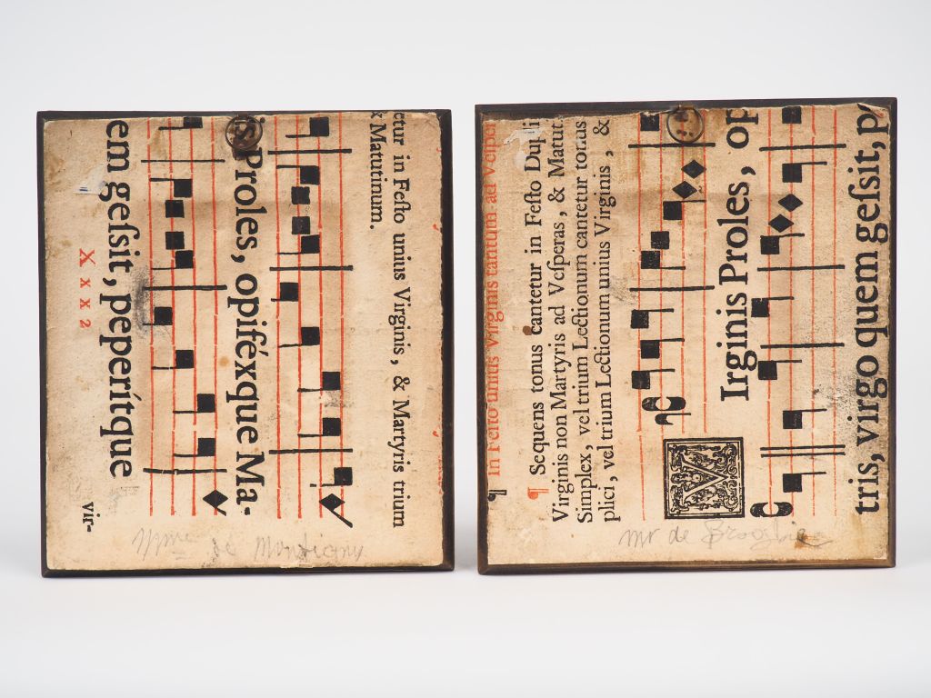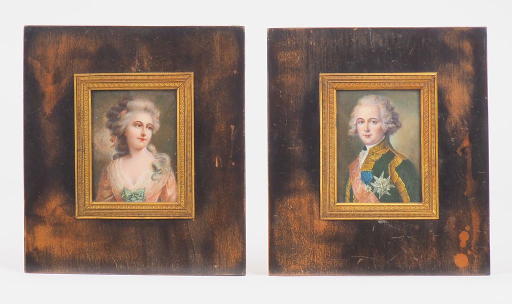 Paire de miniatures XIXème, "portrait de Mme de Montigny" et "portrait d'homme" dans des cadres en bois et laiton. Dim. (miniature) : 7 x 5,3 cm.