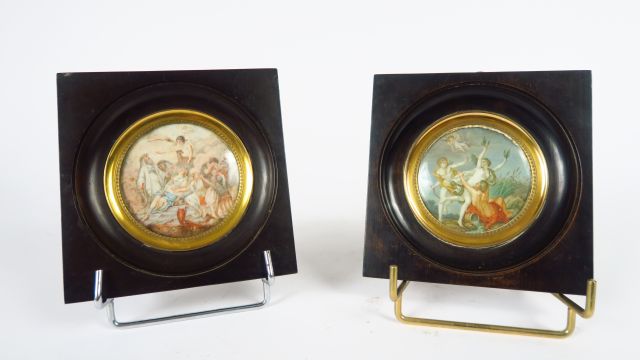 Lot de Paire de miniatures XIXème sur ivoire 'Scènes mythologiques'. Diam. : au prix de 200 à 300 € en vente aux enchères par l'hôtel des ventes Primardeco