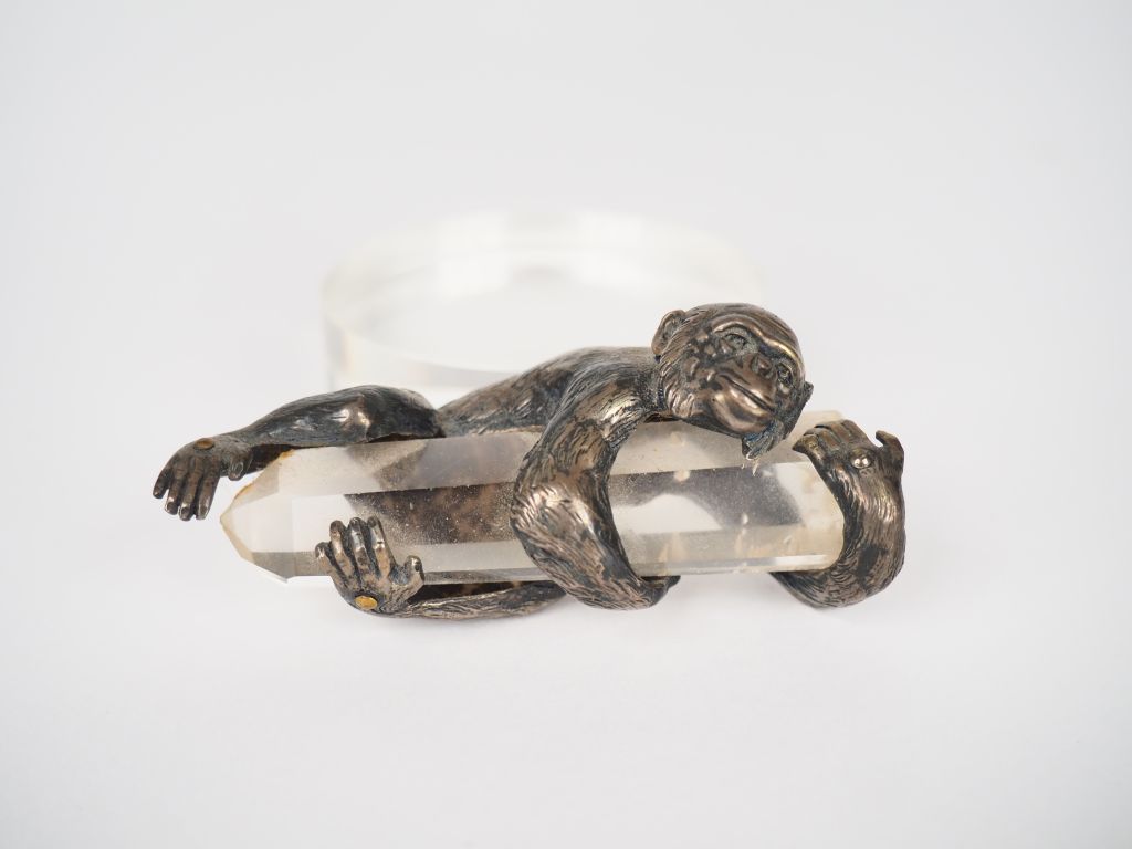 Lot de Pendentif en argent et crisral figurant un singe montant à un arbre. au prix de 60 à 80 € en vente aux enchères par l'hôtel des ventes Primardeco