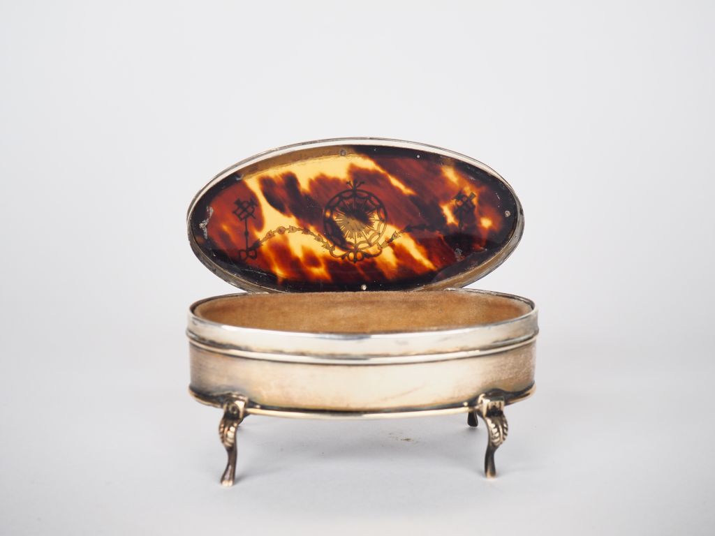 Boite fin XVIIIème en cuir, monture en pomponne, le couvercle orné d'u lot n°4 Estimation : 200 - 300 €