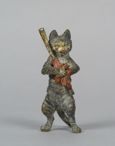 Lot de Sujet en bronze polychrome de Vienne 'le chat ramoneur' H. 6,5 cm au prix de 50 à 80 € en vente aux enchères par l'hôtel des ventes Primardeco
