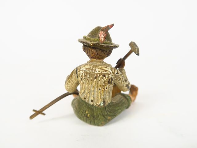 Sujet en bronze polychrome de Vienne "petit autrichien bricolant sa charrette" H. 6,5 cm