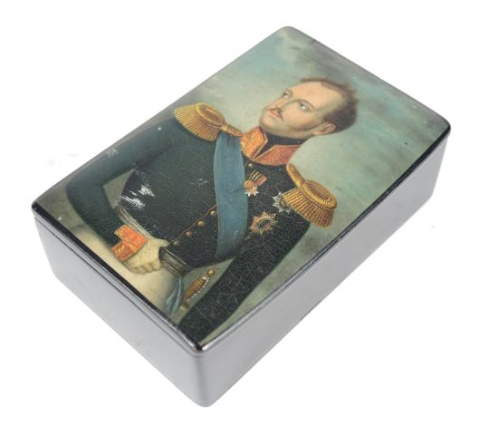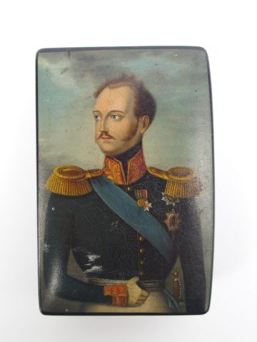 Tabatière russe XIXème Portrait d'officier sur le couvercle, monogrammée et armoriée à l'intérieur du couvercle. 8,7 x 5,8 x 2,8 cm