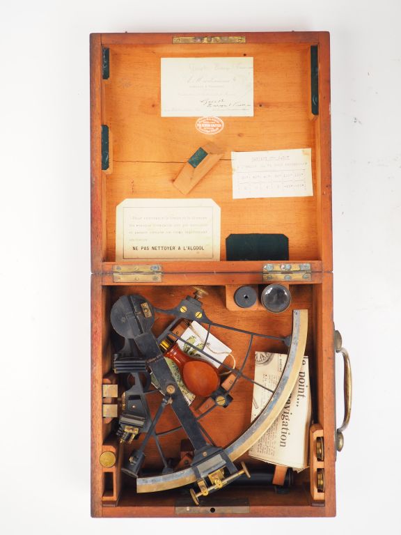 LORIEUX, HURLIMANN Sextant dans son coffret. Portant l'étiquette Hurlimann Ponthus et Therrode. Dim. 22,5 x 28 cm