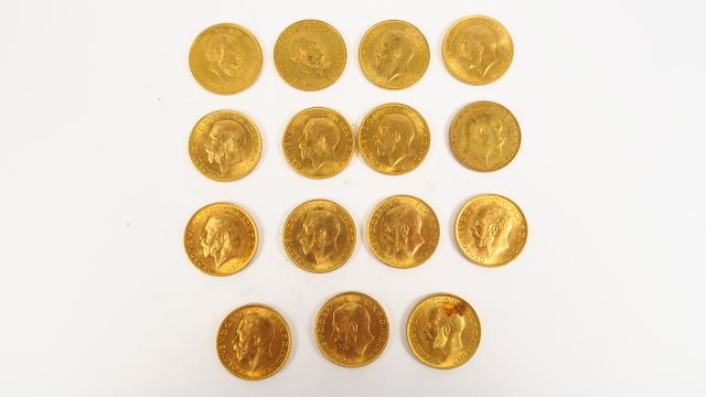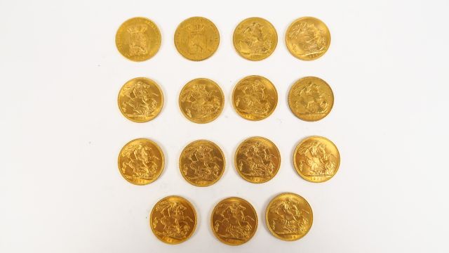 13 souverains or et 2 pièces de 20 guinées or