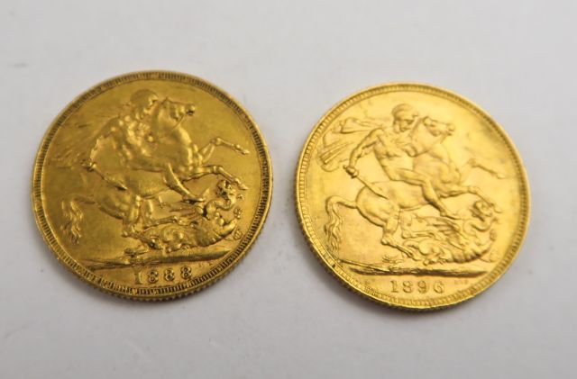 2 souverains Reine Victoria. 1888 et 1896. Frais acheteurs : 5 % TTC