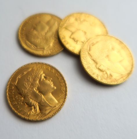 4 pièces de 20 francs or Marianne : 1906, 1907, 1911 et 1913