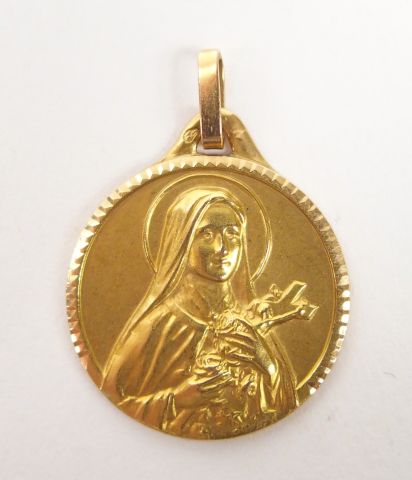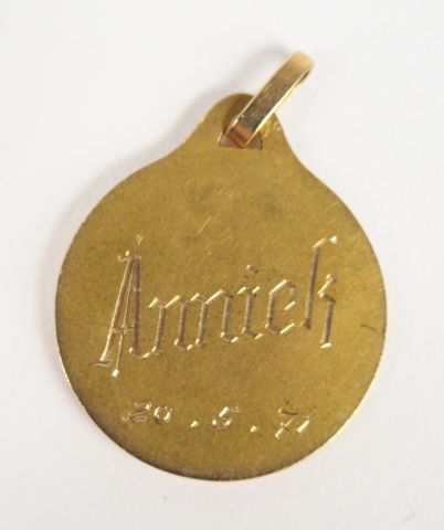 Médaille religieuse en or jaune, gravée Annick. Poids: 2gr