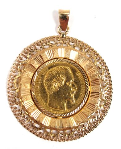 Pièce 20 Francs or, Napoléon III, 1859-A. Monture or jaune. Poids : ...