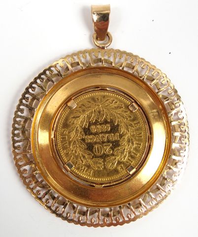 Lot de Pièce 20 Francs or, Napoléon III, 1859-A. Monture or jaune. Poids : au prix de 180 à 200 € en vente aux enchères par l'hôtel des ventes Primardeco