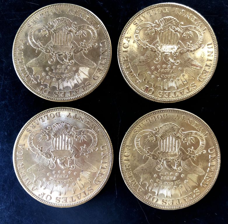 Quatre pièces de 20 Dollars or, 1904. FRAIS ACHETEURS 5% TTC.