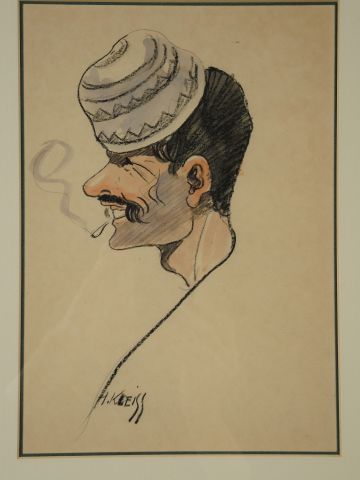Lot de H.KLEISS 'Portraits d'arabes'. Suite de quatre caricatures aquarellées au prix de 400 à 600 € en vente aux enchères par l'hôtel des ventes Primardeco