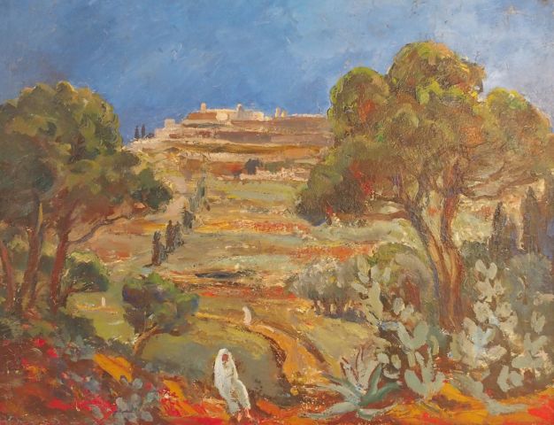 Jean Eugène BERSIER, " Les environs d'Alger". Huile sur toile marouflée sur panneau, en bas à gauche. 27 x 35cm