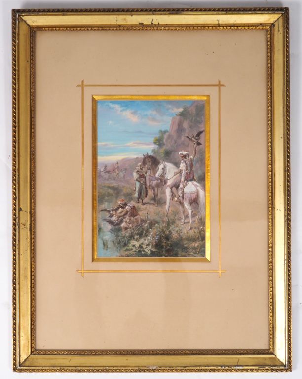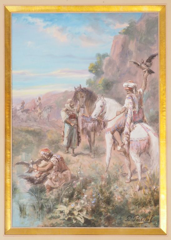 Lot de P. PASCAL. "Chasse au faucon". Gouache, signée en bas à gauche. Dim. : au prix de 350 à 500 € en vente aux enchères par l'hôtel des ventes Primardeco