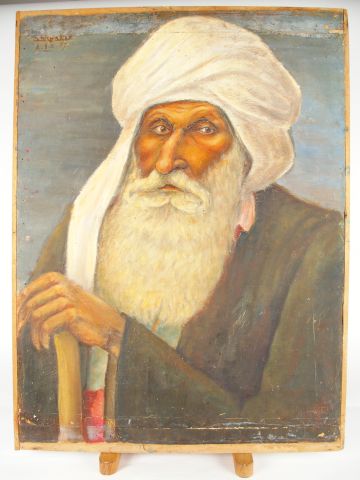 P. RICHARD 'Le vieil arabe'. Huile sur isorel, signée en haut à gaucheet datée 27. 85 x 62 cm