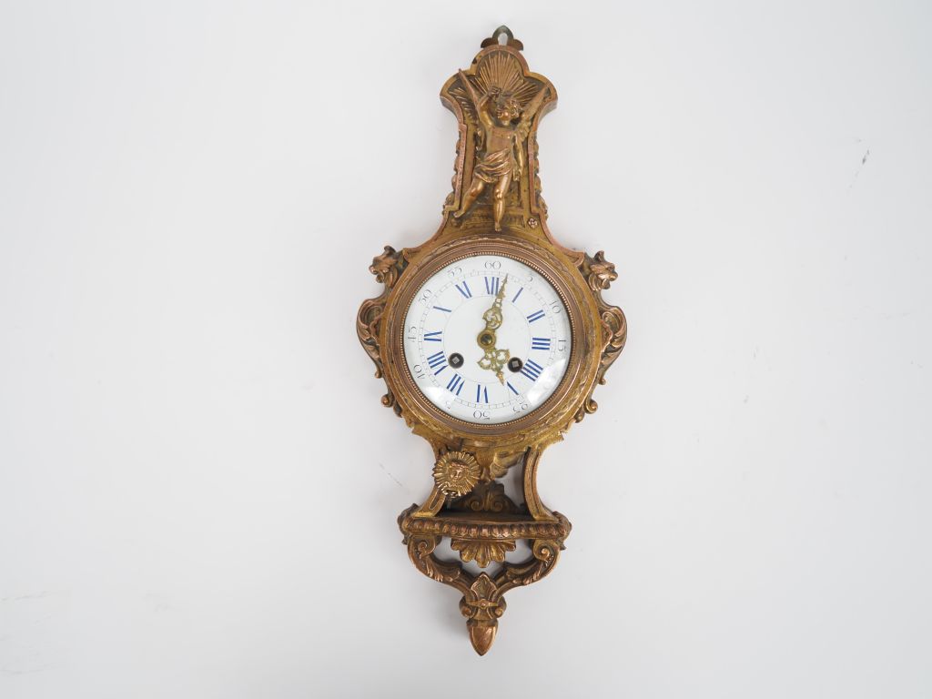 Cartel d'alcove de style Louis XVI en régule doré et cuivré. H. 42 cm...