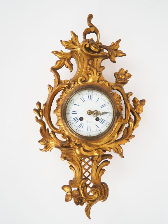 Cartel d'applique de style Louis XV en métal doré, à décor de rocailles, de feuillage et de fruits. Dim. 50 x 27 cm