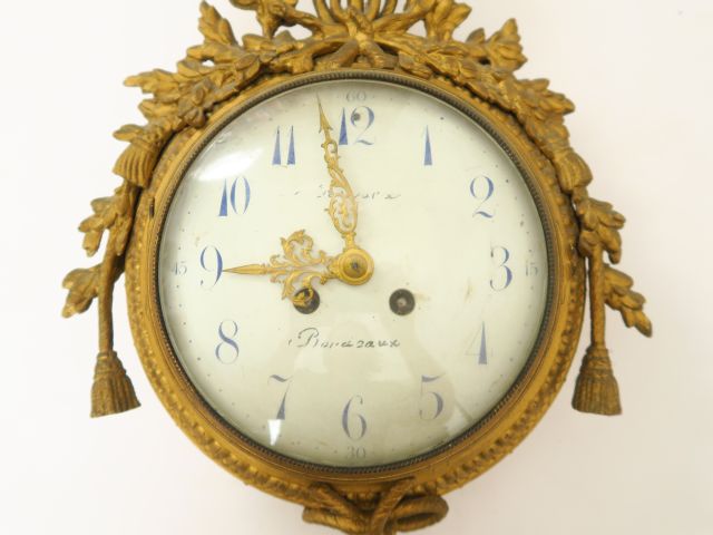 Lot de Cartel d'applique de style Louis XVI en bronze. H. 88 cm au prix de 200 à 300 € en vente aux enchères par l'hôtel des ventes Primardeco