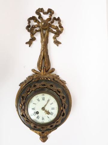 Cartel d'applique XIXème de style Louis XVI en bronze et tôle patinée et dorée H. 57 cm