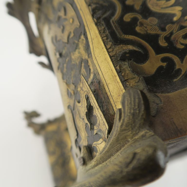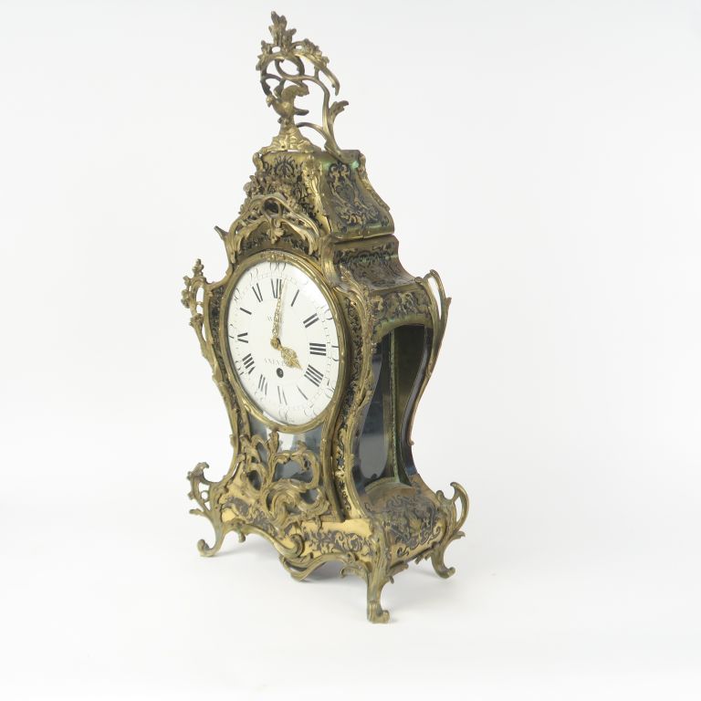 Cartel Louis XV en marqueterie Boulle signé Avril à Nevers. Avec son balancier H. 72,5 cm
