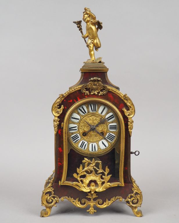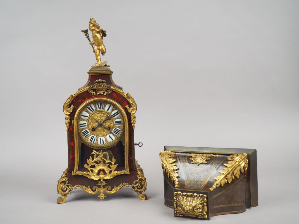 Cartel Napoléon III de style Louis XIV en écaille rouge, bronze et laiton. H. avec support : 62 cm. (support dépareillé)
